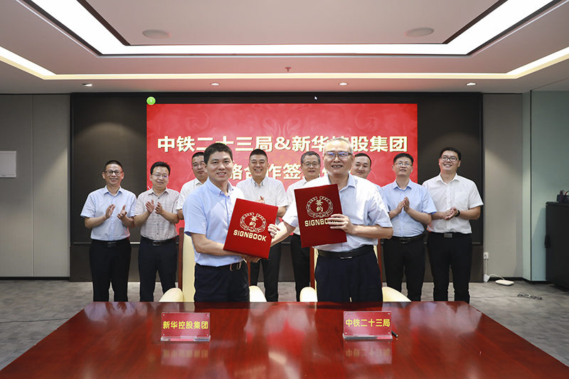 2020年7月23日,中鐵二十三局與新華控股集團(tuán)戰(zhàn)略合作簽訂儀式在合肥隆重舉行。中鐵二十三局集團(tuán)黨委常委、紀(jì)委書記、監(jiān)事會主席李強(qiáng),華中區(qū)域指揮部指揮長袁勇,新華控股集團(tuán)董事長吳成柱、副總裁莫曉東等雙方領(lǐng)導(dǎo)和代表出席了本次簽約儀式。雙方就地產(chǎn)、教育、基礎(chǔ)建設(shè)、生態(tài)環(huán)保、產(chǎn)業(yè)基金等領(lǐng)域的合作進(jìn)行了深入交流,達(dá)成了一系列合作。