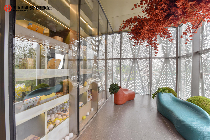 整個營銷中心以極具特色的丹霞地貌為色彩靈感。美學藝術、潮流引領、年輕生態(tài)、社交互動四大理念交織,一座“峽谷咖啡廳”,氤氳美好生活??Х?、書店、座談、游趣……讓建筑不再冰冷,而是成為生動的、溫暖的、富有趣味的生活主場。