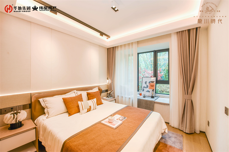 樣板間以金棕灰和落日咖為基調(diào),色彩上彰顯出新青年的活力,空間格局上,最大化延展實用功能,是二人世界到三口之家的舒居優(yōu)選。三開間大面寬采光,陽光清風常伴家中,獨立書房,滿足家庭需求變化,兒童房、興趣室隨心創(chuàng)改。在89㎡戶型中,寬境主臥是其一大亮點,不僅貼心地預留了衣柜的位置,還額外增加景觀飄窗的空間巧思,增加室內(nèi)采光的同時,還賦予空間更多使用面積。