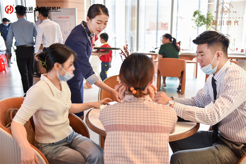 在示范區(qū)開放之前,華地偉星·龍川時代就受到市場的強烈關注和高度追捧。客戶預約爆滿,本次開放現(xiàn)場進行分流參觀,但還是難擋客戶的熱情。除去美麗景致外,華地偉星·龍川時代與客戶之間的美好緣分也在延展,來來往往人流如織,置業(yè)顧問用他們的熱情耐心地接待每一組訪客。每一組客戶到來,他們都主動上前,一絲不茍地為他們引導至內(nèi)場、細心講解,客戶滿意的笑容是館內(nèi)最美好的風景。