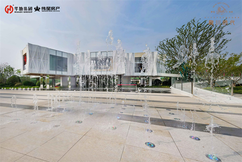 緩緩步入美好生活館前廣場,依次映入眼簾的就是懸浮建筑體、鏡面水景、旱噴設計、自然綠景和特色鋪裝,從低到高,從現(xiàn)實到夢幻,組成五維立體視覺。自然的留白,建筑的低語,讓人流連忘返。