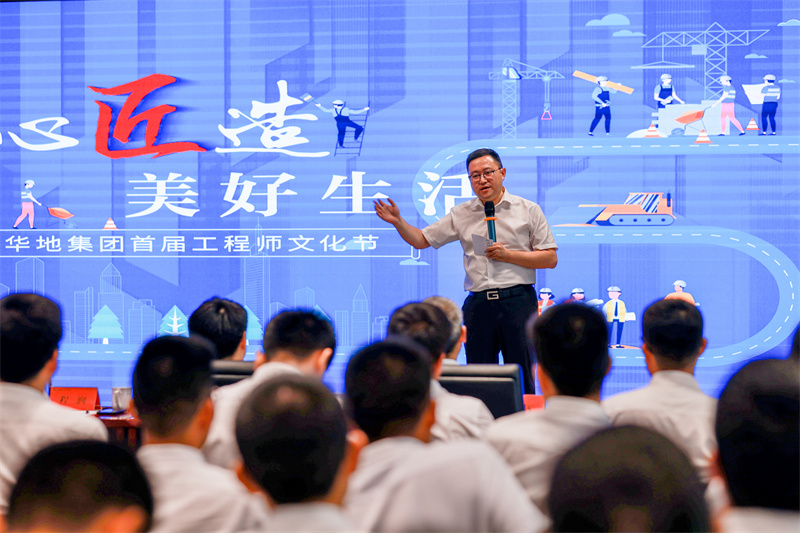 大會最后,華地集團執(zhí)行總裁吳守狀總發(fā)表動員講話,并宣布將每年7月的第一個周六設為華地集團工程師文化節(jié)。吳總指出,華地工程師團隊作為華地集團品質發(fā)展戰(zhàn)略的重要一環(huán),必須傳承和發(fā)揚“作風嚴謹、工藝精準、步步苛求、安全至上、分秒必爭”的優(yōu)秀品質;必須肩負起責任與擔當,將華地工程師文化的品質信仰——“工匠之心,品質為魂”深深刻在華地鐵軍的血液里和靈魂里,做到對品質負責,對業(yè)主負責、對企業(yè)負責,對社會負責,引領行業(yè)標桿,將美好的設計落成讓業(yè)主滿意的作品,征途漫漫,惟有奮斗!