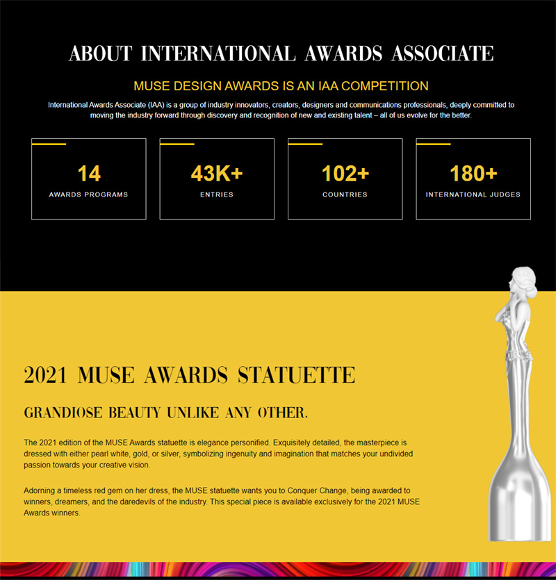 作為始創(chuàng)于美國紐約的專業(yè)國際設(shè)計競賽,繆斯設(shè)計獎(Muse Design Awards)是全球創(chuàng)意設(shè)計領(lǐng)域最具國際影響力的獎項之一,嚴格的評審體系和高質(zhì)量的評判標準每年吸引眾多全球知名品牌與設(shè)計師爭相參與。