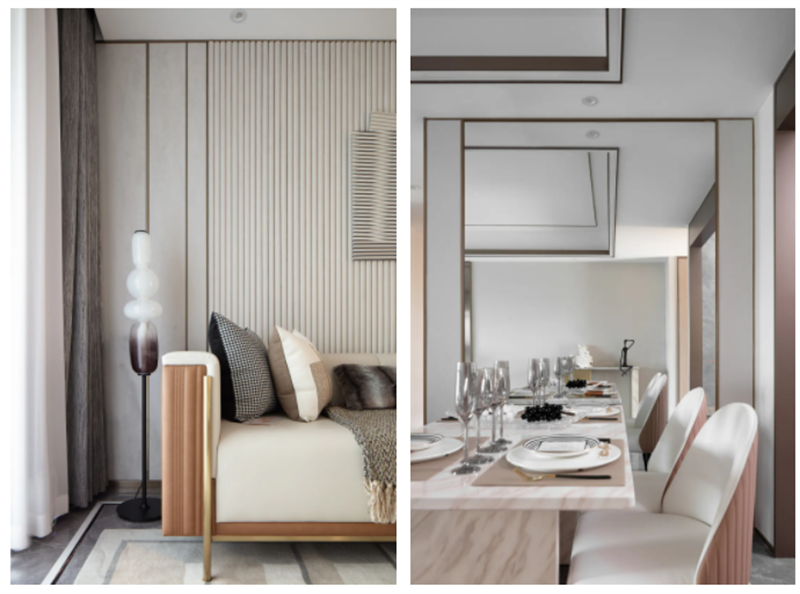 房間內(nèi)不同物理質(zhì)感的交相輝映能夠產(chǎn)生具有層次感的精致觸感。皮質(zhì)表面的光滑細膩紋路給人以柔軟且平靜的舒適感。