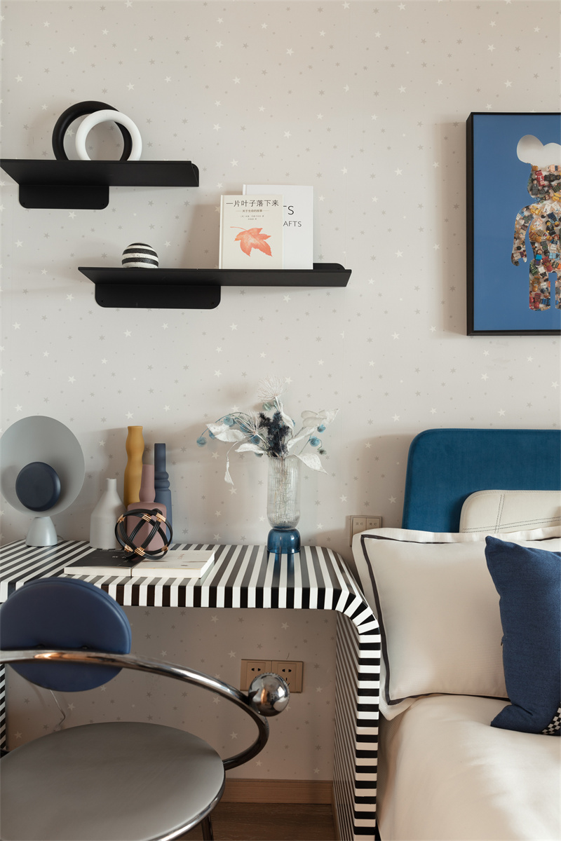 低飽和度的色彩搭配,點綴以明亮的黃色與橙色,整體空間充滿活力與童趣。這個靜處一隅的兒童閱讀區(qū),緊鄰洽談區(qū)與樣板間,讓生活的美好在這一刻就被感知。