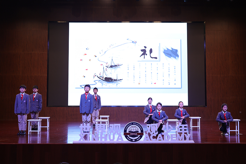在對學(xué)生成長過程中需要培養(yǎng)的主動(dòng)性學(xué)習(xí)能力、原創(chuàng)能力、技術(shù)設(shè)計(jì)應(yīng)用能力、批判性思維、審美能力、團(tuán)隊(duì)協(xié)作能力等方面進(jìn)行考量后,新華公學(xué)將教育戲劇的展現(xiàn)方式定為英文戲劇。該類展現(xiàn)方式,起到了將英語課程由綜合語言運(yùn)用到英語學(xué)科的核心素養(yǎng)培養(yǎng)的作用。通過將戲劇元素滲透到教育活動(dòng)中,為學(xué)生設(shè)計(jì)多種體驗(yàn)項(xiàng)目,使學(xué)校的每一個(gè)地方都成為“小舞臺(tái)”,學(xué)生成為“小演員”。