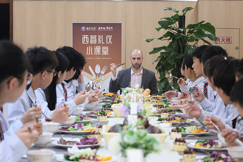 學(xué)校以研究性學(xué)習(xí)為手段,以探究性合作為提升點(diǎn),以跨學(xué)科融合為思維訓(xùn)練模式,結(jié)合學(xué)科教學(xué)本身特點(diǎn)和規(guī)律深入開展“項(xiàng)目制學(xué)習(xí)”(PBL),促進(jìn)學(xué)生學(xué)養(yǎng)、素養(yǎng)、品位的全面提升。同時(shí),積極構(gòu)建科、藝、體、衛(wèi)、人文融合校本課程,培養(yǎng)興趣、發(fā)展特長、形成專長,提高學(xué)習(xí)能力和綜合素養(yǎng),推動(dòng)育人高質(zhì)量發(fā)展。目前,學(xué)校已形成種類更多,層次更高,特色更明的ECP課程體系,在滿足學(xué)生學(xué)習(xí)需要的同時(shí),培養(yǎng)興趣、發(fā)展特長、形成專長。學(xué)校鼓勵(lì)教師弘揚(yáng)“文雅、優(yōu)雅、高雅”三雅氣質(zhì),讓教師爭做學(xué)生喜歡和敬佩的老師,倡導(dǎo)學(xué)生展現(xiàn)“禮貌、禮儀、禮節(jié)”三禮風(fēng)采,讓學(xué)生找到好孩子的感覺,增強(qiáng)學(xué)校內(nèi)生活力。學(xué)校獨(dú)創(chuàng)的西餐禮儀小課堂,實(shí)現(xiàn)禮儀教育“課程化”,每個(gè)孩子收獲的不僅有知識(shí)、樂趣、體驗(yàn),還有詩和遠(yuǎn)方的品位,學(xué)生喜歡,家長贊嘆。