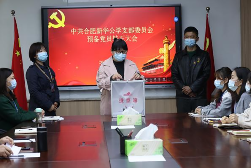 2022年3月31日,新華公學(xué)黨支部預(yù)備黨員轉(zhuǎn)正大會在六號樓五樓黨員活動室順利召開。新華公學(xué)黨支部全體黨員參加會議。會議由新華公學(xué)黨支部書記、總校長秦新春主持。