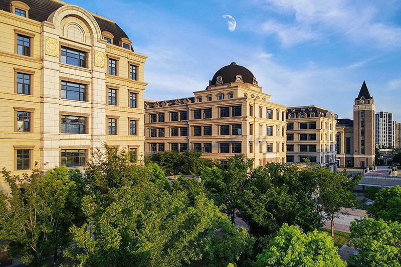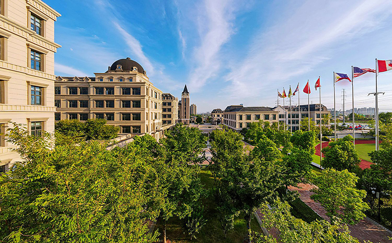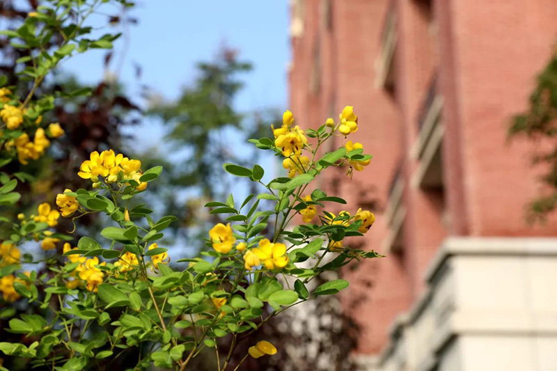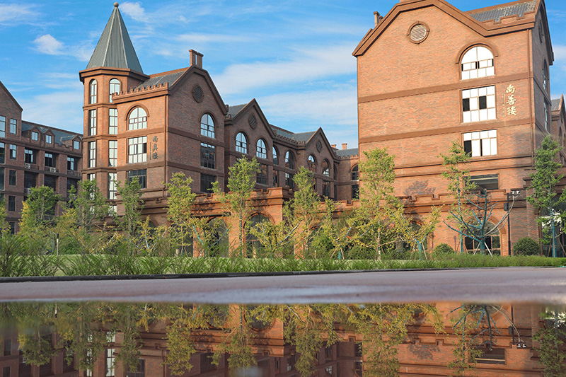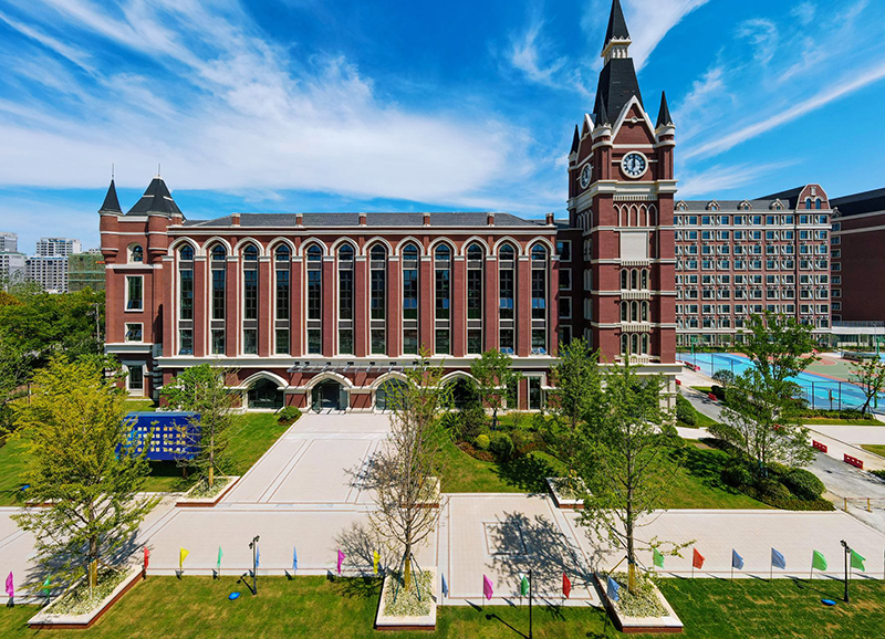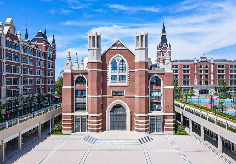 簡(jiǎn)約的英式建筑與尖頂?shù)母呗栫姌?,錯(cuò)落有致地散落在校園里,構(gòu)成新華藝術(shù)高級(jí)中學(xué)的獨(dú)特風(fēng)景線。