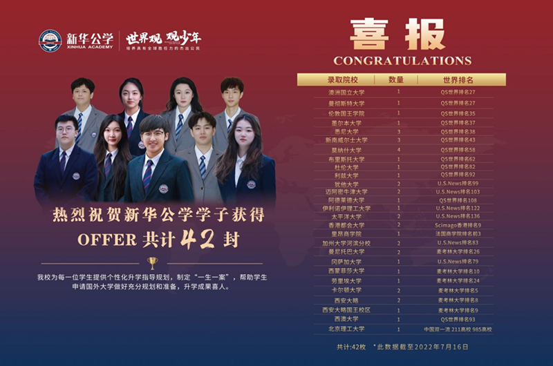 新華公學(xué)學(xué)子收獲世界知名高校offer
