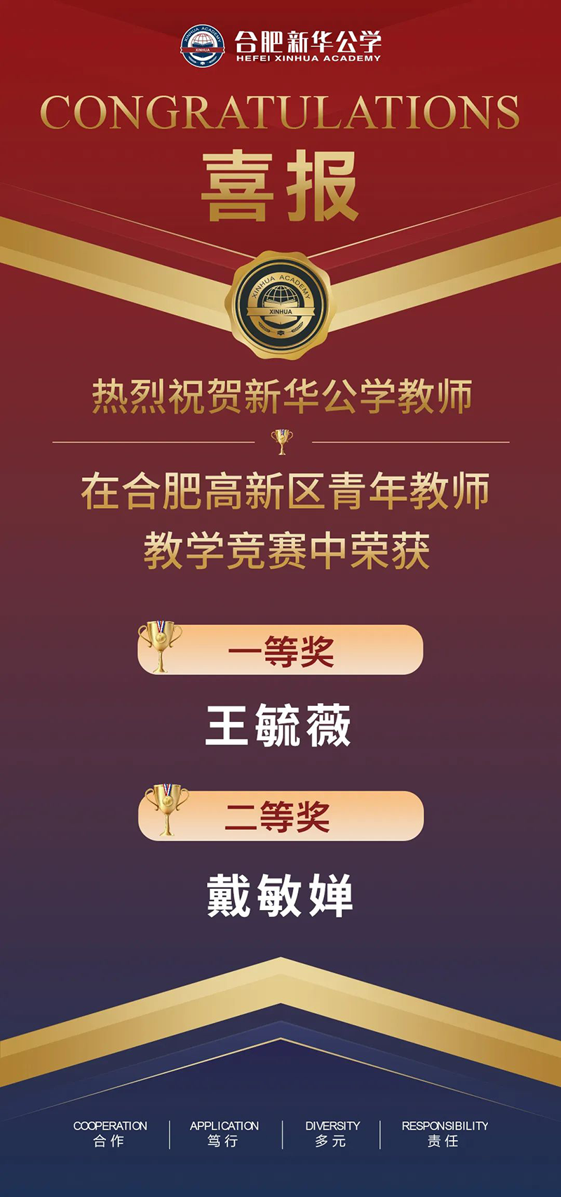 熱烈祝賀我校2名教師在合肥市高新區(qū)青年教師教學(xué)競(jìng)賽中榮獲一、二等獎(jiǎng)!展現(xiàn)了我校青年教師的卓越風(fēng)采,體現(xiàn)了我校對(duì)青年教師培養(yǎng)的卓越成效!
