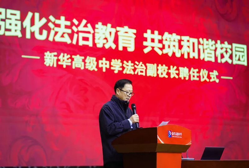 徐邦民校長就學(xué)校法治教育工作做出指導(dǎo),要求全體同學(xué),要認(rèn)真學(xué)好、用好法律知識,切實(shí)增強(qiáng)自身法治觀念,將法治的思想貫穿學(xué)習(xí)、生活的始終,做一名知法、守法的新華學(xué)子,做一名懂法、普法的追光少年。