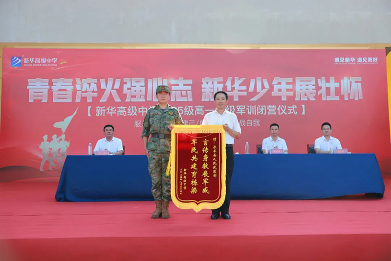 新華高級中學(xué)校長徐邦民向長豐縣人武部贈送了錦旗,表達(dá)學(xué)校對全體教官辛勤帶訓(xùn)、嚴(yán)謹(jǐn)教導(dǎo)的衷心感謝。