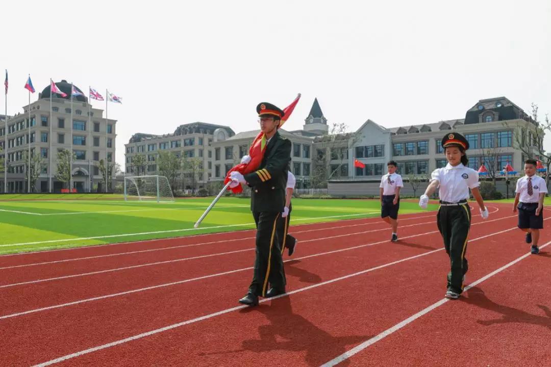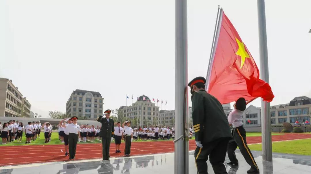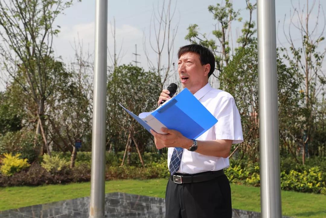 升國旗、奏唱國歌,在高亢嘹亮的國歌聲中,五星紅旗冉冉升起。伴隨著五星紅旗一同迎風(fēng)飄揚(yáng)的,還有新華公學(xué)校旗,新華控股集團(tuán)司旗,一同見證著這一隆重而又莊嚴(yán)的時(shí)刻。