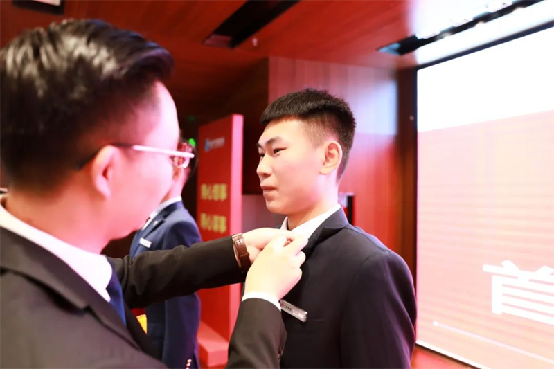 華地好生活集團總經理羅星星為優(yōu)秀學員佩戴郁金香徽章