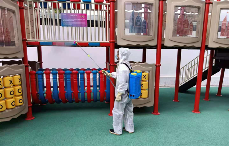 針對園區(qū)、案場、寫字樓、學(xué)校等多個項目,嚴(yán)格遵循防疫工作標(biāo)準(zhǔn),對電梯、樓道、垃圾桶、車庫、出入口、兒童設(shè)施等公共區(qū)域堅持每日進(jìn)行全覆蓋、高頻次消毒,對商寫、學(xué)校等重點(diǎn)區(qū)域一天不低于兩次消毒作業(yè),不放過任何一個衛(wèi)生防疫死角。