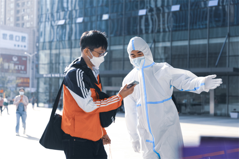 在疫情反撲的態(tài)勢下永遠(yuǎn)有這樣一群不辭辛勞的戰(zhàn)士們身著白衣,為大家筑起安全屏障“請大家佩戴好口罩,保持1米以上的安全距離出示健康碼,憑碼進(jìn)入,謝謝配合”。