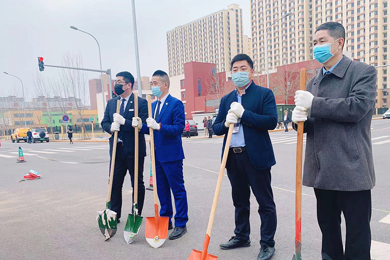 在康潤家園東區(qū)鑫立路植樹現場,全員干部齊心協(xié)力,每道工序都做得有條不紊,揮鍬鏟土、扶苗填坑、提水澆灌... 大家分工協(xié)作,配合默契。