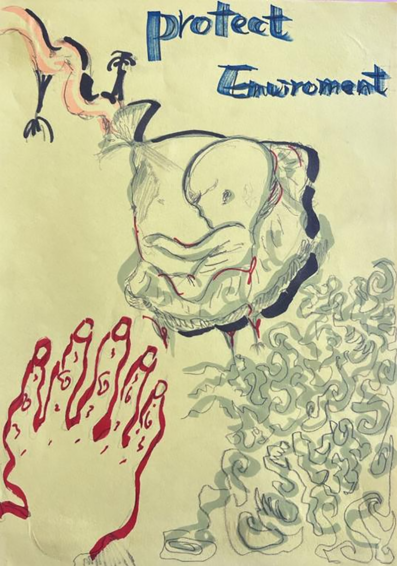 同學們從“防疫、和平、環(huán)境、保護動物...等等人文角度,開展了一系列藝術創(chuàng)作。