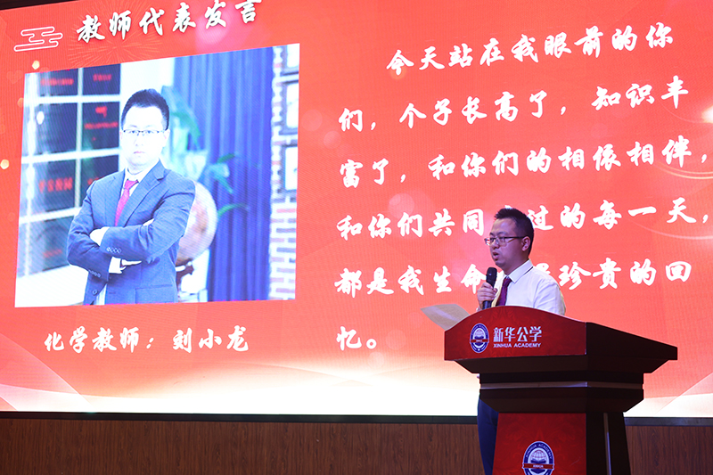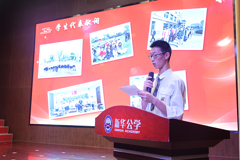 “感謝新華公學(xué)。我的母校您不但給了我們優(yōu)美的校園環(huán)境,過硬的教學(xué)設(shè)施和優(yōu)秀的師資隊(duì)伍,還教會(huì)了我們做人的基本準(zhǔn)則。我們從三年前那一個(gè)個(gè)稚氣的孩童,成為了今天蓬勃向上的青年,新華公學(xué)的精神已經(jīng)成為我們?nèi)松囊徊糠郑俏覀冞h(yuǎn)航的永恒動(dòng)力”