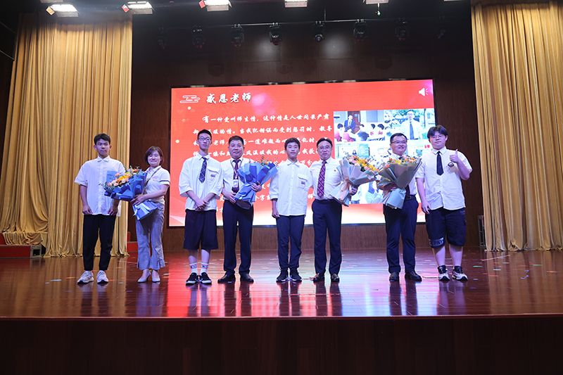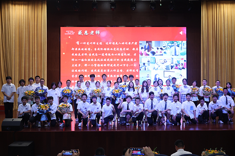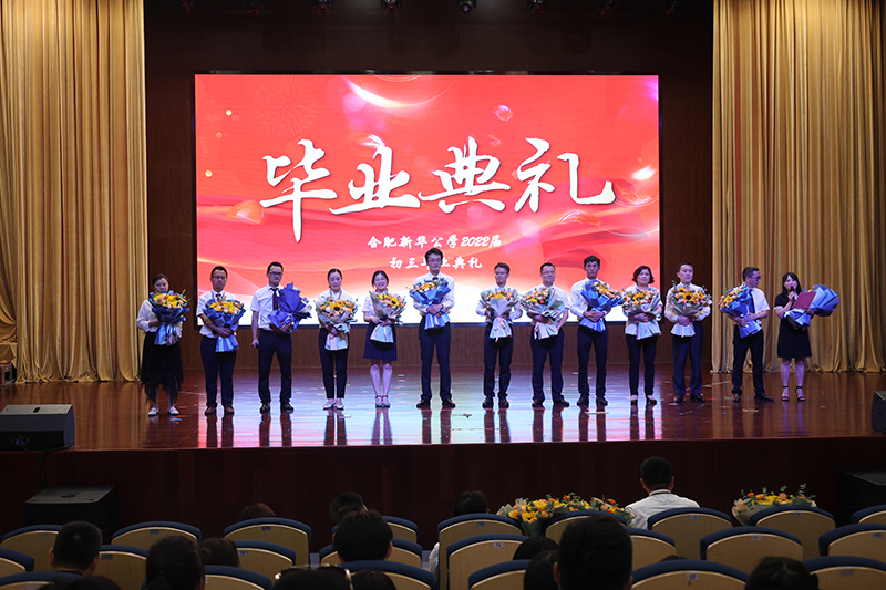 終章散場(chǎng),學(xué)生依次上臺(tái)為敬愛的老師們送上鮮花,全體初三老師獻(xiàn)唱《放心去飛》。“放心去飛,勇敢地?fù)]別,這一次說好了不掉眼淚”,我們緊緊相擁,我們微笑話別,祝福彼此,愿少年此去前程似錦,歸來功成名遂!