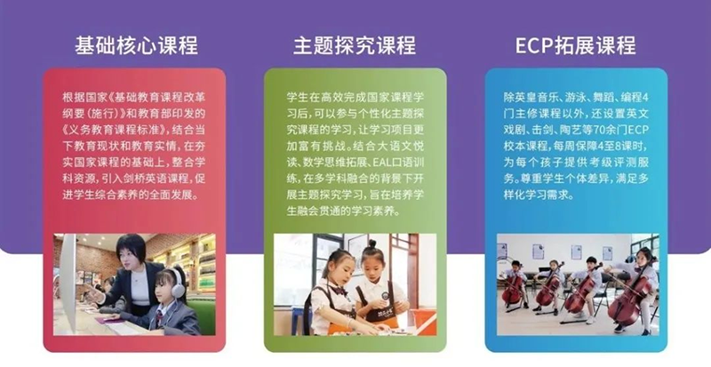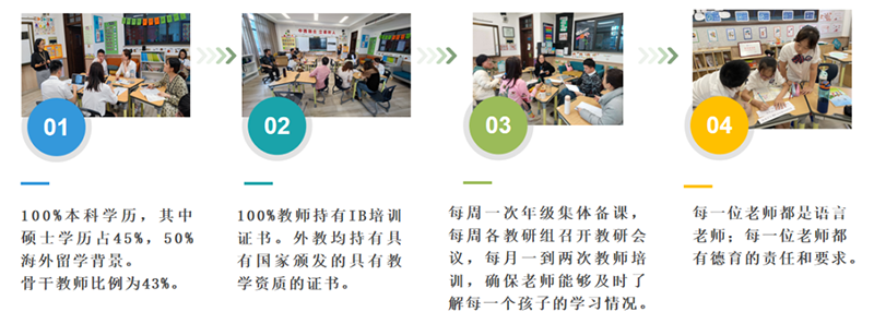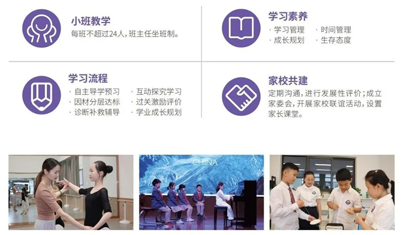 小學課程與教學活動圍繞興趣培養(yǎng)、學習技能及思維方式進行編排;各學科中外教師共同備課,幫助學生建立廣泛的知識關聯;設置多學科融合探究,提升學科素養(yǎng);分層教學模式及項目式合作學習,針對性提高學生的學術水平;鼓勵學生參與實踐活動,提高學生獨立思考與合作創(chuàng)新能力。