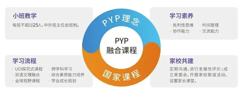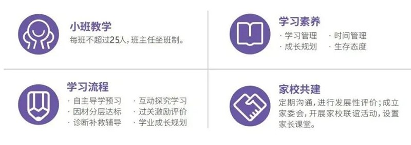 在完成國家規(guī)定課程的基礎上,強化語文、數(shù)學、歷史、政治等課程教學,融合課程由外教進行授課,包括英語文學、數(shù)學、戲劇和科學等主修課程。