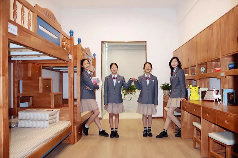 學校采用全封閉寄宿制管理,住宿環(huán)境為四人間,實木床,24小時冷熱水,24小時冷暖空調(diào),24小時校醫(yī)、宿管、老師陪伴、開通親情電話……宿舍不只是孩子睡覺的地方,也是精神家園,在這里感受家的溫暖。
