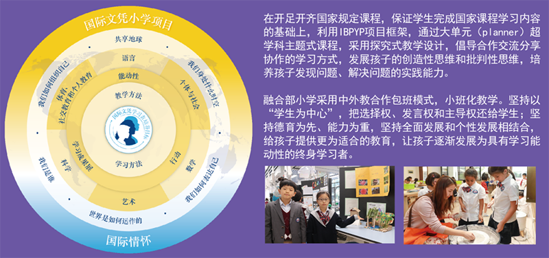 小學課程與教學活動圍繞興趣培養(yǎng)、學習技能及思維方式進行編排;各學科中外教師共同備課,幫助學生建立廣泛的知識關(guān)聯(lián);設置多學科融合探究,提升學科素養(yǎng);分層教學模式及項目式合作學習,針對性提高學生的學術(shù)水平;鼓勵學生參與實踐活動,提高學生獨立思考與合作創(chuàng)新能力。