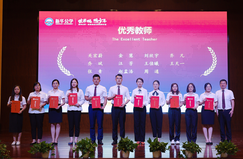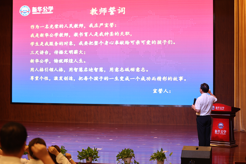 頒獎(jiǎng)儀式最后,全體教師莊嚴(yán)宣誓,永葆教育初心,不負(fù)使命??梢?jiàn)唯有平凡,才見(jiàn)高貴;唯有辛勞,方得始終。正是老師們這種付出和奉獻(xiàn),使茁壯成長(zhǎng)中的新華公學(xué)管理規(guī)范,課程特色彰顯,教育質(zhì)量穩(wěn)步提升,學(xué)生競(jìng)賽頻頻獲獎(jiǎng),家長(zhǎng)好評(píng)紛至沓來(lái)。