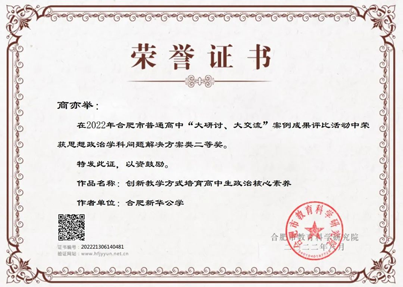 除了學(xué)校內(nèi)部的表彰以外,新華公學(xué)多位教師榮獲合肥市獎(jiǎng)項(xiàng),這更是對(duì)我校教師教學(xué)水平及師德師風(fēng)的肯定與贊揚(yáng)。