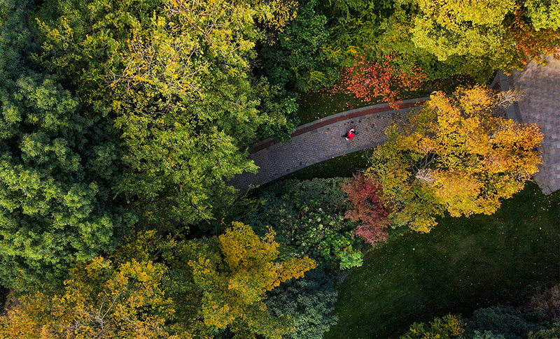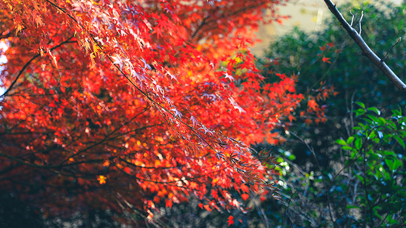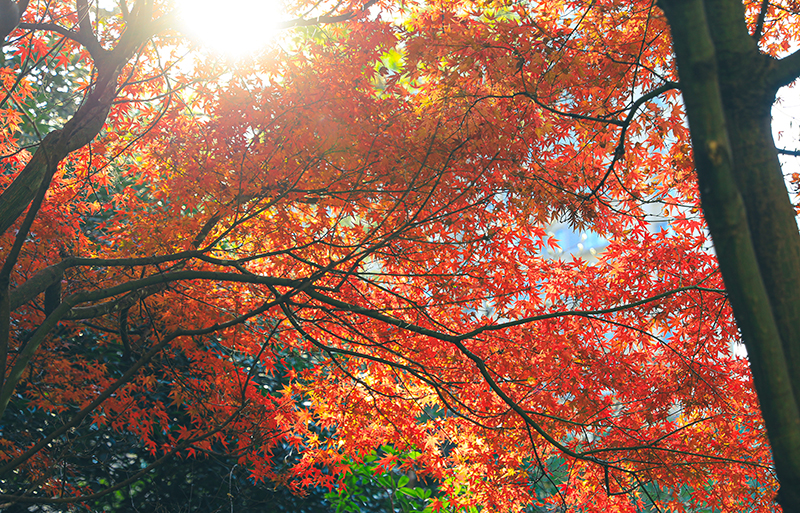 “霜染鴉楓迎日醉”,和煦陽光灑滿楓葉,如生命之火輕盈躍動(dòng),以經(jīng)霜不改蓬勃的風(fēng)姿溫暖過路歸人。
