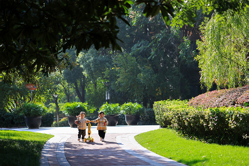 林蔭芳草錯(cuò)落蓬勃,渲染一片詩意天地,承載著寶貝天真的情態(tài)、記錄下家人幸福的笑顏。這份綠意盈懷的美好,是自然的恩賜,更離不開華地對景觀營造的細(xì)致用心。