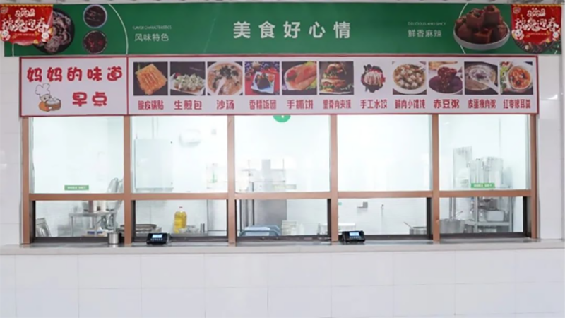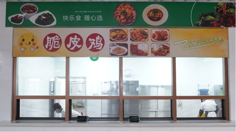 學(xué)生餐廳菜品留樣三天,餐具24小時消毒處理;菜品種類齊全,集各地美食于一體、多元風(fēng)味并存;食材采購來源大品牌超市,食材新鮮,質(zhì)量有保證;明廚亮灶工程,集視頻監(jiān)控、展示直播于一體,保護(hù)師生“ 舌尖上的安全”。