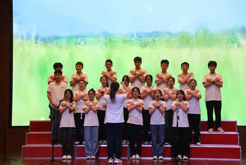 通過唱響班歌的形式展示學(xué)生們的青春風(fēng)采,為祖國獻(xiàn)禮。新華公學(xué)總校長秦新春先生,雙語部校長張寧先生,雙語部中學(xué)校長尹漸平先生,雙語部中學(xué)副校長吳曙光先生,雙語部中學(xué)教學(xué)主任陳鹍先生,及初一年級、高一年級全體師生參與此次活動(dòng)。