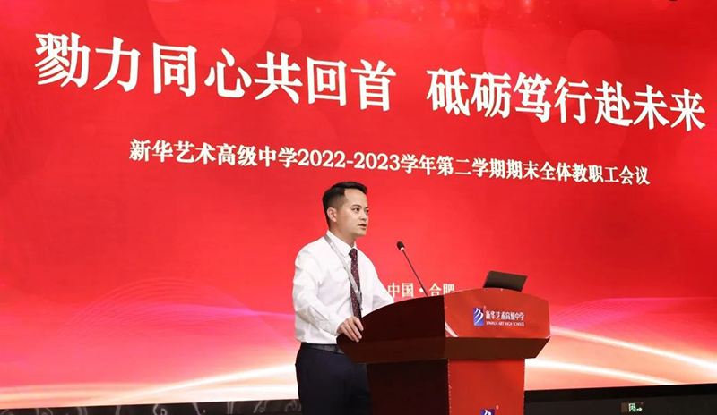 盛情夏季,桃李芬芳;潛心育人,賡續(xù)前行。為發(fā)揮黨建的引領(lǐng)作用,推動(dòng)學(xué)校工作高質(zhì)量發(fā)展,凝聚新征程再出發(fā)的奮進(jìn)力量,7月11日下午,新華藝術(shù)高級(jí)中學(xué)全體教職員工歡聚一堂,隆重召開(kāi)以“勠力同心共回首,砥礪篤行赴未來(lái)”為主題的2022-2023學(xué)年第二學(xué)期期末全體教職工會(huì)議。新華藝術(shù)高級(jí)中學(xué)校長(zhǎng)邵忠德,副校長(zhǎng)蔡賢滿、李愛(ài)國(guó)、吳東、方明生等領(lǐng)導(dǎo)及全體教職員工參加,大會(huì)由黨政辦公室主任夏娟娟主持。