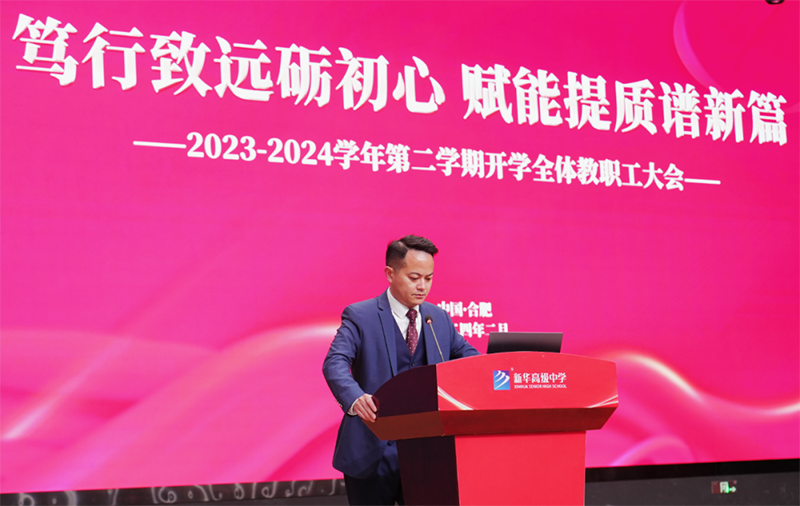 時序更替,華章日新。為進一步凝聚共識,統(tǒng)一思想,全力做好新學期各項準備工作,2月19日上午,我校在文體中心報告廳召開新學期全體教職工大會,會議由新華高級中學黨政辦公室主任夏娟娟主持。全體教職工以龍騰虎躍的精神面貌,充沛飽滿的工作熱情齊聚一堂參加會議。