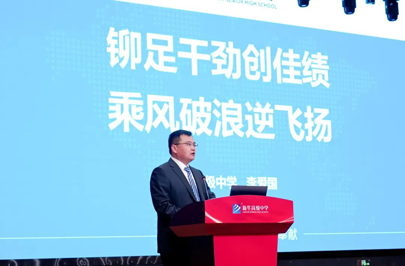 副校長李愛國以《鉚足干勁創(chuàng)佳績 乘風破浪逆飛揚》為主題發(fā)言。他就新學期教育教學工作做出全面部署,提出新學期的六大工作目標;同時,他希望全體教師關注自身的師德修養(yǎng),努力成為學問深、品德高、格局大的“大先生”。