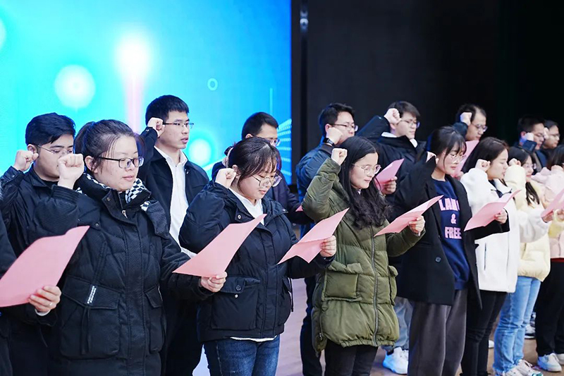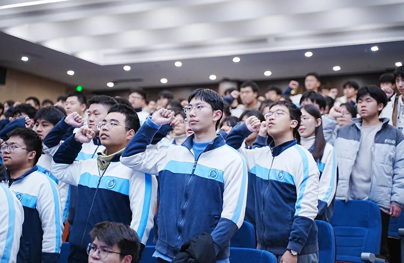 接下來由鮑李合毅同學帶領(lǐng)全體學生宣誓,他們豪情萬丈,壯志凌云,鏗鏘的宣誓響徹大廳,氣壯山河的誓言似乎已經(jīng)在預(yù)示著他們學考的勝利。