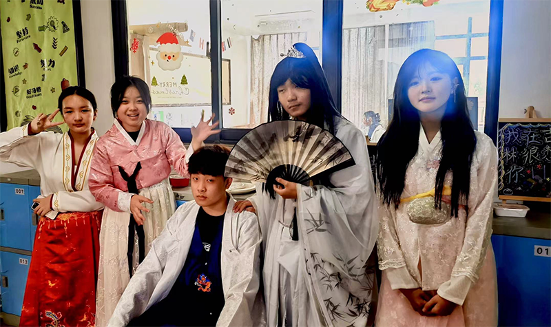 值得一提的是,活動(dòng)還特別設(shè)置了服飾DRESS UP環(huán)節(jié)。學(xué)生們紛紛穿上自己精心挑選的傳統(tǒng)民族服飾(或漢服、旗袍、唐裝等),仿佛穿越時(shí)空,回到了那個(gè)充滿詩(shī)意的年代。他們的身影在人群中穿梭,成為了活動(dòng)現(xiàn)場(chǎng)最亮麗的風(fēng)景線。